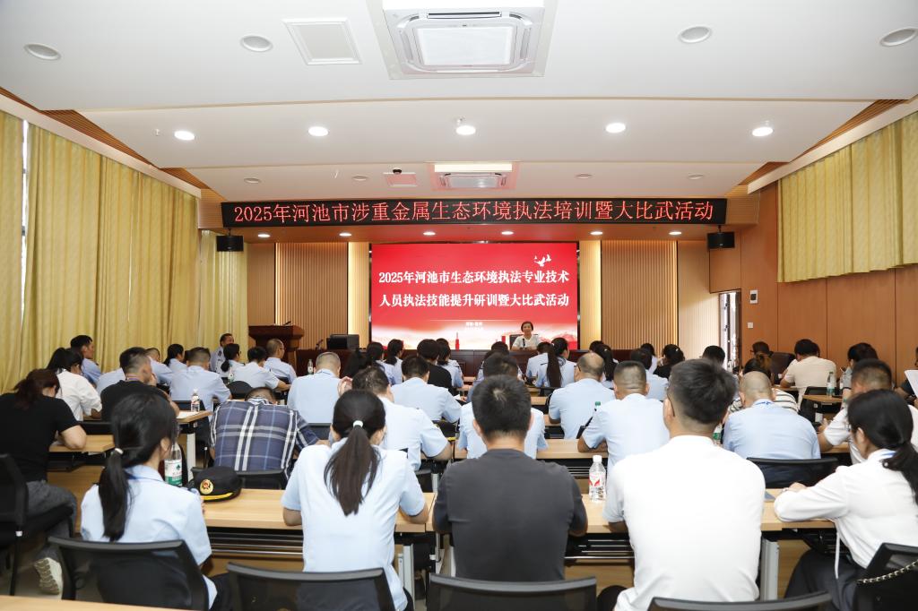 由河池市总工会、市生态环境局联合举办,BWIN必赢BWIN必赢,BWIN必赢承办的2025年河池市生态环境执法专业技术人员执法技能提升研训活动,于8月至9月间,在BWIN必赢举行。该活动分环境执法知识竞赛、执法人员环境执法专业技能提升研训与大比武、优秀环境执法人员个性化执法技能提升研训三个阶段进行。市生态环境局局长左钢在开幕致辞中表示:这次大比武活动以‘以训促学、以赛促练’为目标,目的是激发执法人员的积极性与主动性,有效提升执法队伍的专业素养和实战能力。