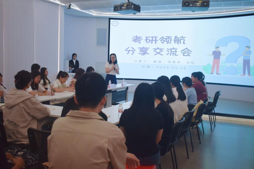 各研究生代表依次分享考研经验,主要围绕目标院校选择和考研复习安排进行分享与交流。互动环节中,同学们积极提问,学长学姐们耐心解答。