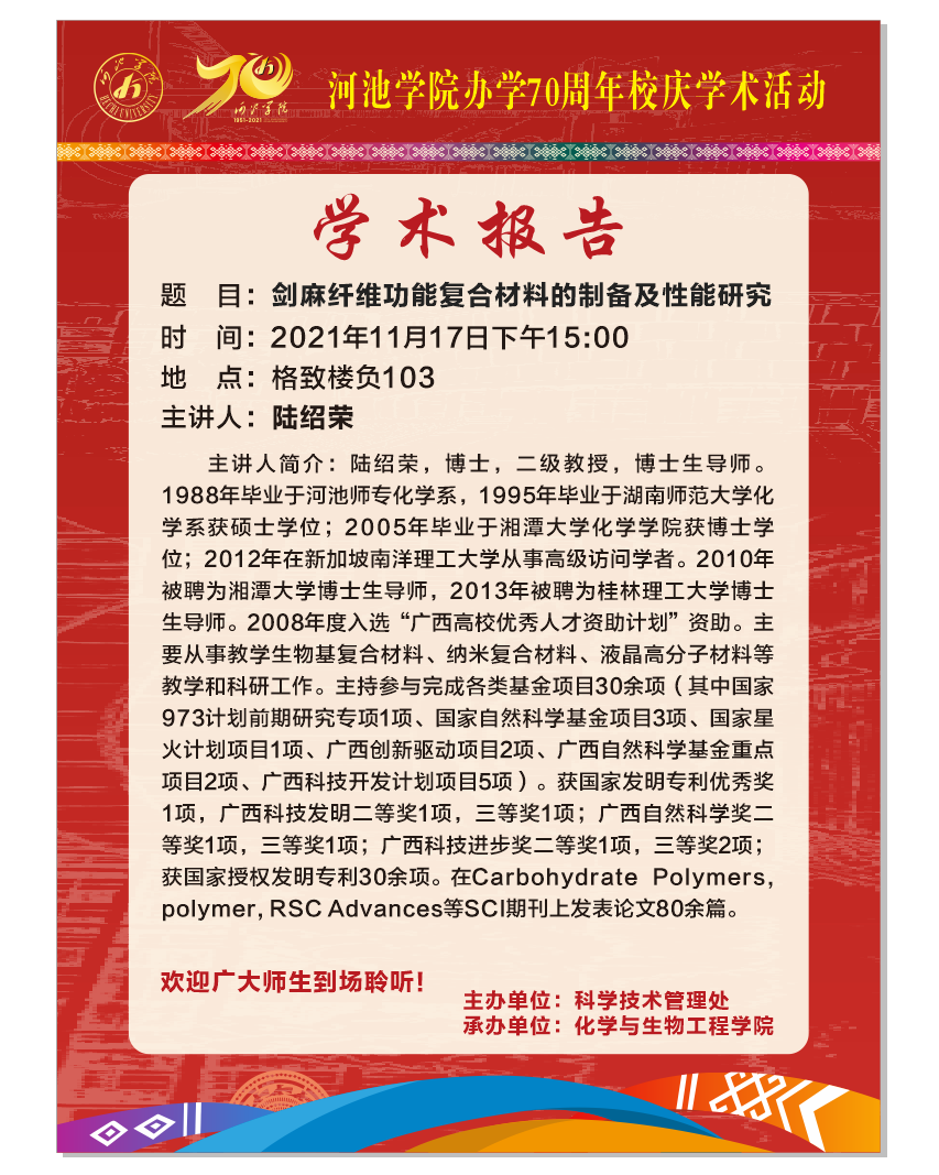 学术讲座:剑麻纤维功能复合材料的制备及性能研究