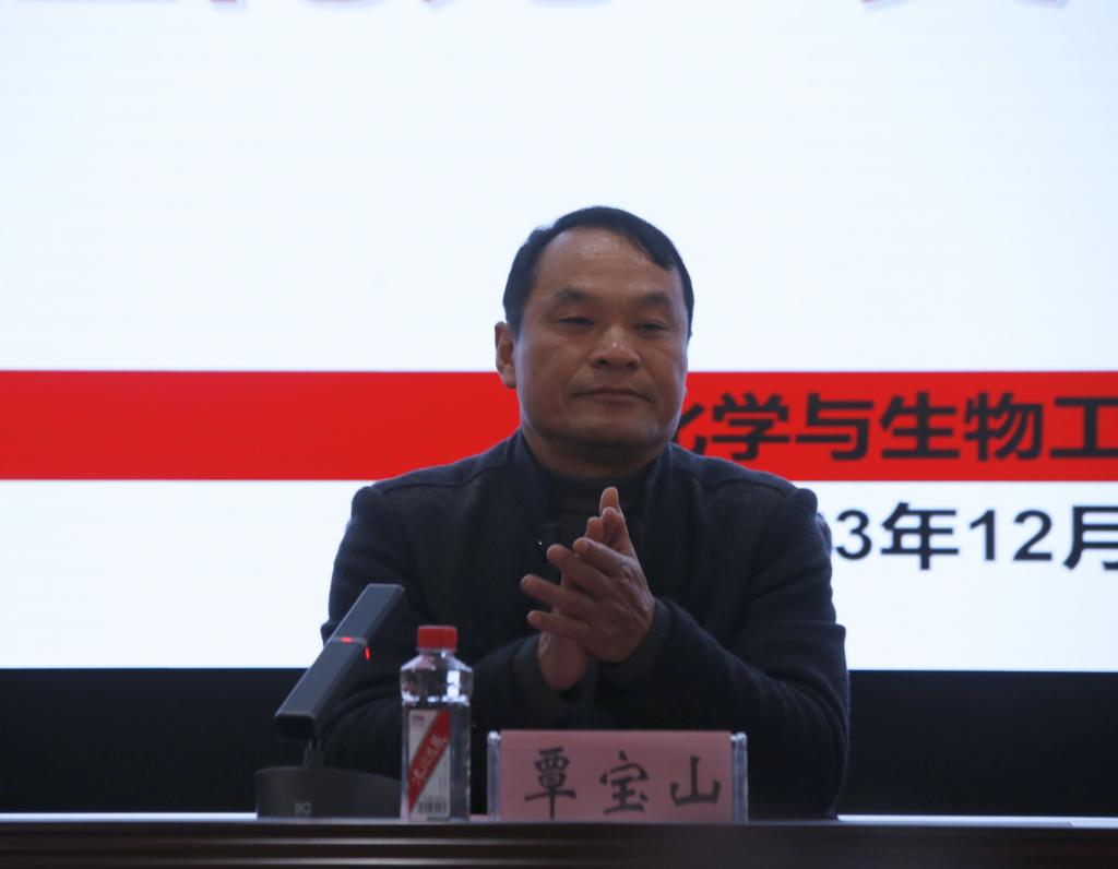 覃宝山为本次颁奖仪式致辞,回顾我院2023年取得的成绩,他指出,这些成就离不开校友和社会各位同仁的努力与支持,也离不开全体师生的共同努力与付出。他表示,再次感谢覃俭总经理等优秀校友对化生学院教育事业的关心与支持,以及对我院学子取得的优秀成绩感到骄傲与自豪。