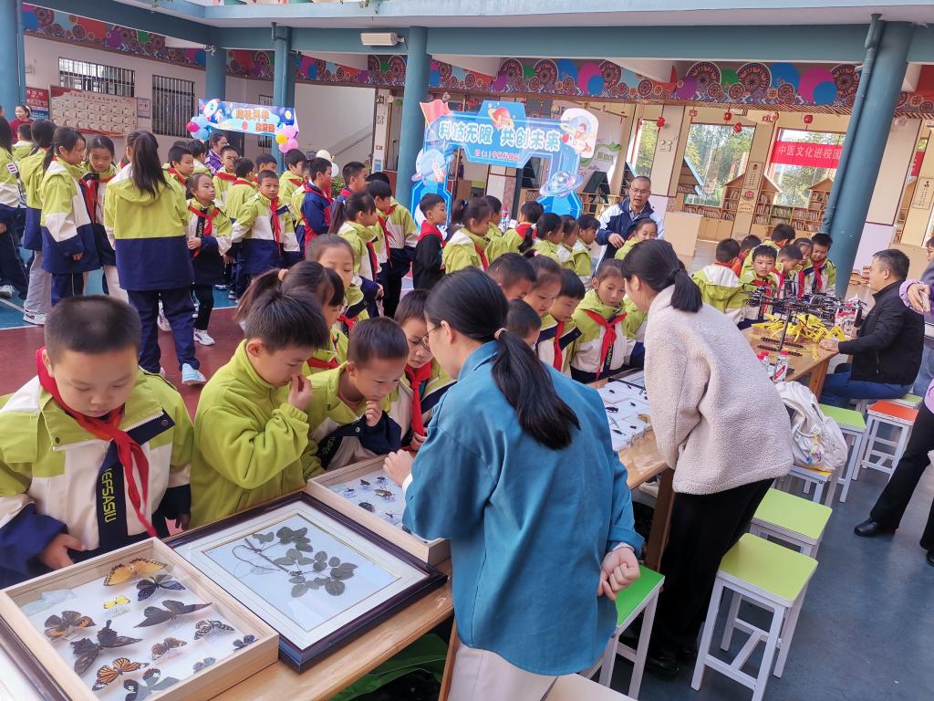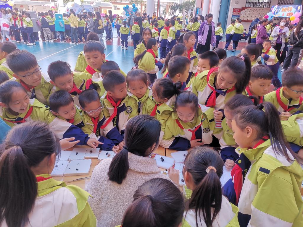 为了全面贯彻落实二十大精神,推动生态文明建设和生态环境保护,践行“绿水青山就是金山银山”理念,向学生普及生物多样性知识,提升学生对动植物的保护意识,促进人与自然和谐共生。11月20日上午,河池市宜州区第一小学龙降校区举办“科普进校园”暨科技“游园会”活动,参加师生约500人!BWIN必赢动植物与蚕桑科技馆、BWIN必赢大学生科普协会应邀参加此次科普活动,并在现场进行科普宣讲和科技成果展示。