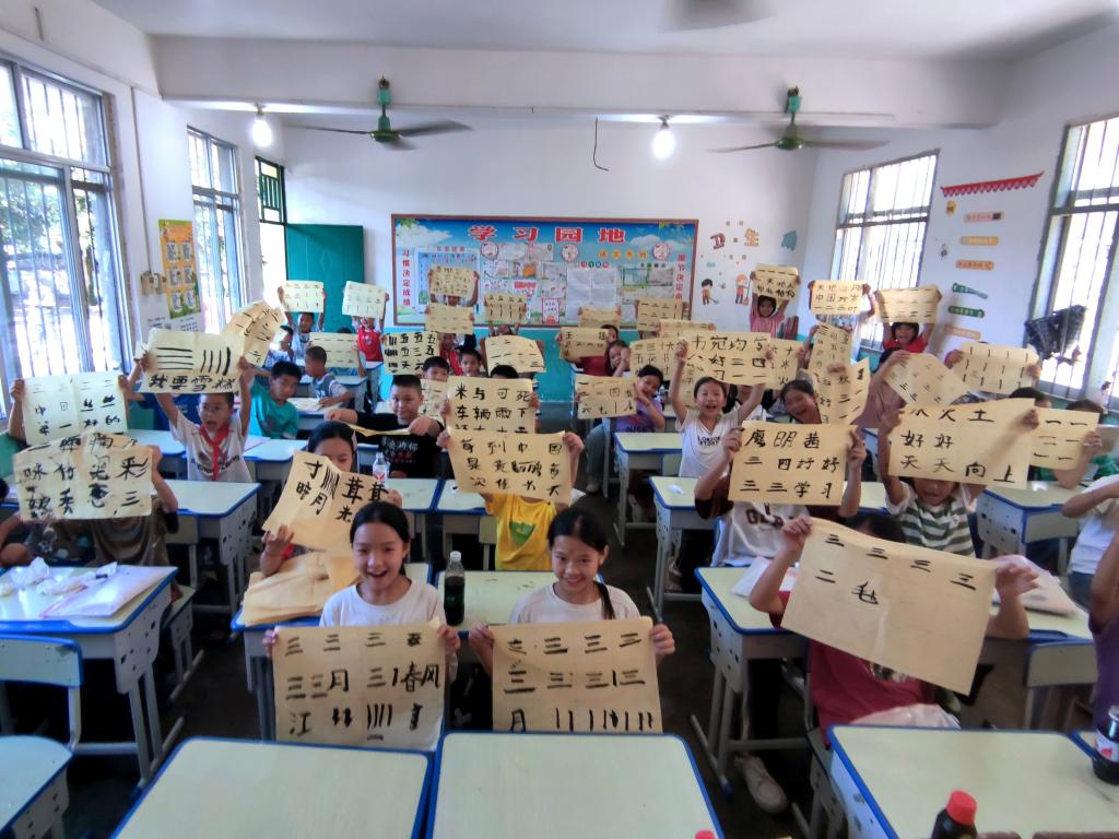 为激发学生学习兴趣,志愿者们设计一系列课堂活动,如传统文化宣讲与手工制作、暑假辅导、探索大自然等,开设书法写作和手工漆扇制作课程,有利于学生深入了解传统文化,亲手体验传统工艺制作过程。志愿者还开设动植物科普大讲堂,通过讲解让学生们了解动植物的基本知识,增强学生的科学素养。同时,志愿者对村委党支部的桑蚕养殖业负责同志进行访谈,深入了解当地桑蚕养殖具体情况,并对村民开展问卷调查工作,了解村民桑蚕养殖情况以及桑蚕养殖户在桑蚕养殖过程中遇到的困难和问题,普及桑蚕病虫害相关知识及防治措施,助力当地桑树种植和蚕业建设。