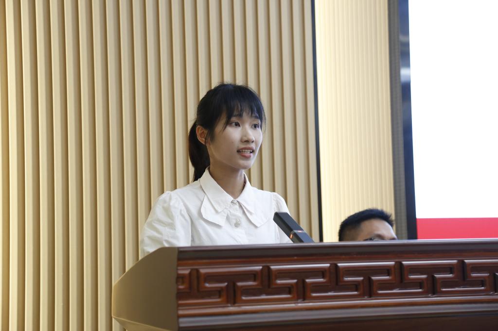获奖学生代表黄蕊发言表示“春由磨砺而出彩,人生因奋斗而升华”青,在今后的大学生活中从点滴做起,志存高远,增长知识,做敢于筑梦、勇于追梦、勤于圆梦的新时代大学生,让青春在时代的进步中焕发出绚丽的光彩。