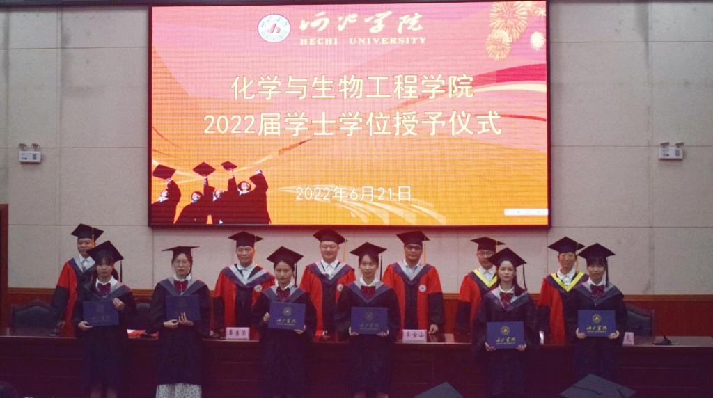 伴随着国歌的响起,2022届毕业典礼暨学士学位授予仪式正式开始。化生学院院长李晓东致辞中对2022届毕业生取得学士学位表示热烈地祝贺,希望毕业生们不忘母校,谨遵老师教诲,锐意进取。宣读2022年BWIN必赢院校级优秀毕业论文获奖名单后向获得者颁发荣誉证书。学位授予仪式完成,象征毕业生已学有所成,可以展翅高飞。毕业典礼上,风华正茂的毕业生们身着学士服,脸上的洋溢着喜悦的笑容。化生学院的各位领导与教授、老师们流露出对毕业生们期盼和不舍。毕业生们每五人一组一次上台,他们满含感激,向老师们鞠躬致谢。