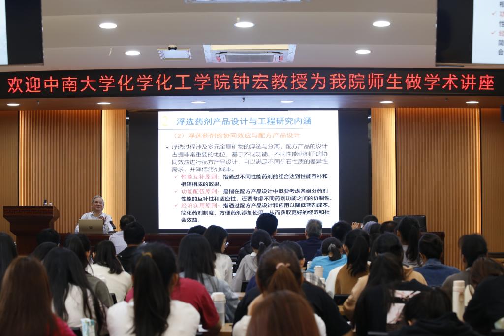钟宏教授以“浮选药剂的产品设计与工程”为题,介绍了化学产品工程的背景和内涵,分享了浮选药剂产品设计和产业化方面的三个案例,在提问交流环节,学院师生积极提出自己的学术困惑,钟宏教授一一解答,讲座过程中,气氛活跃。