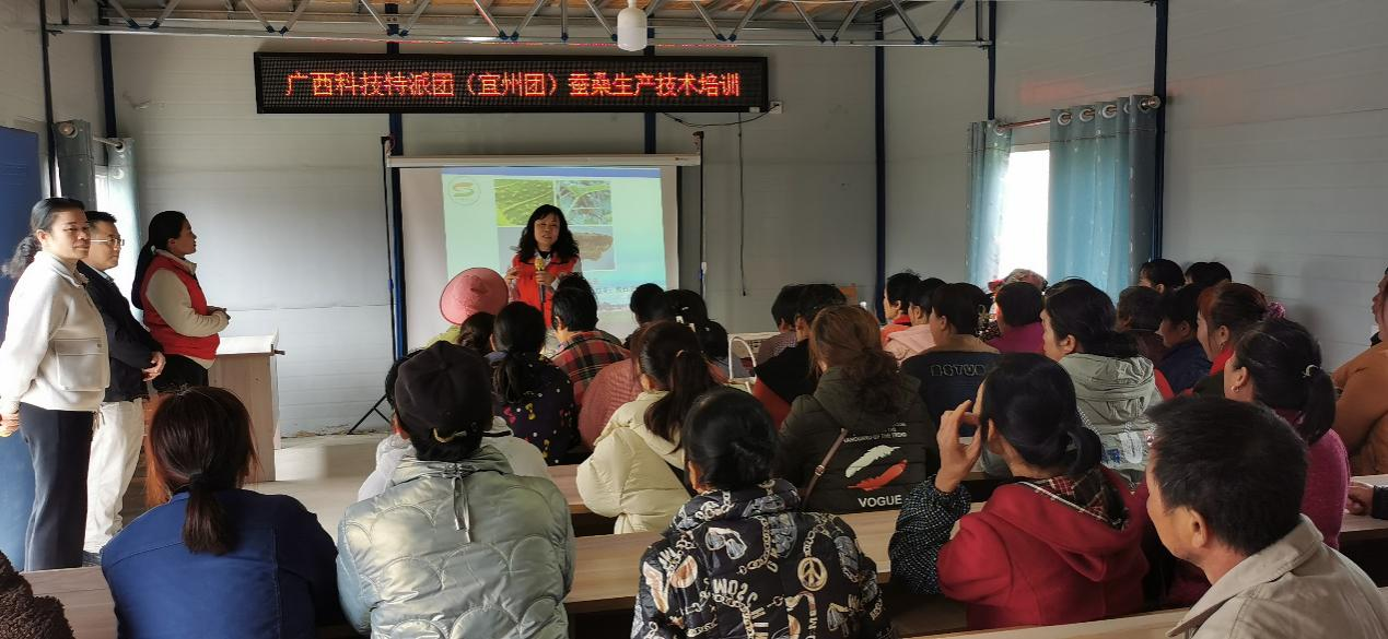覃玥教授与蒋利荣副教授分别就春季养蚕前的注意事项和春季桑园管理进行了主题培训,为村民传授科学的管理方案。