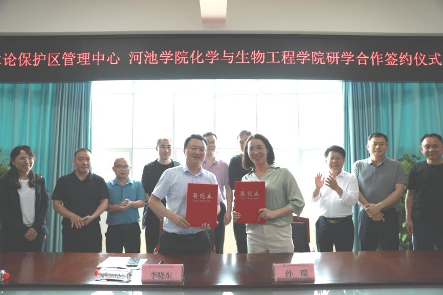 随后,双方展开了深入的交流和探讨,聚焦于木论自然保护区科普教育中文化资源和生态资源的深入挖掘与建设,共同探讨了科普教育的未来发展方向及潜在的合作机会。经过充分的沟通,双方最终达成了重要共识,并正式签署了生物学野外实践基地和研学科普活动战略协议。在会议的最后环节,双方共同参观了木论保护区的兰花培育展示馆和宣教馆,亲身感受了保护区在生态保护与科普教育方面的成果与特色。