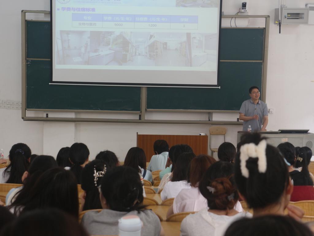 宣讲过程中,重庆文理学院药学院院长蔡艳华和肇庆学院环境与化学工程学院副院长吴贤格就各自所在院校的发展历程、学科建设、科研平台以及招生政策等内容进行宣讲。
