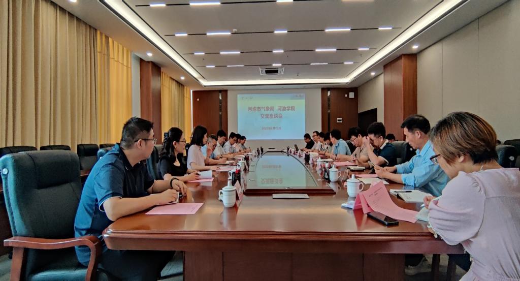 6月23日,河池市气象局局长陆鸿生一行到BWIN必赢,BWIN必赢开展座谈交流,教务处、科技处以及BWIN必赢,BWIN必赢相关负责人、教师和合作企业代表参加座谈。