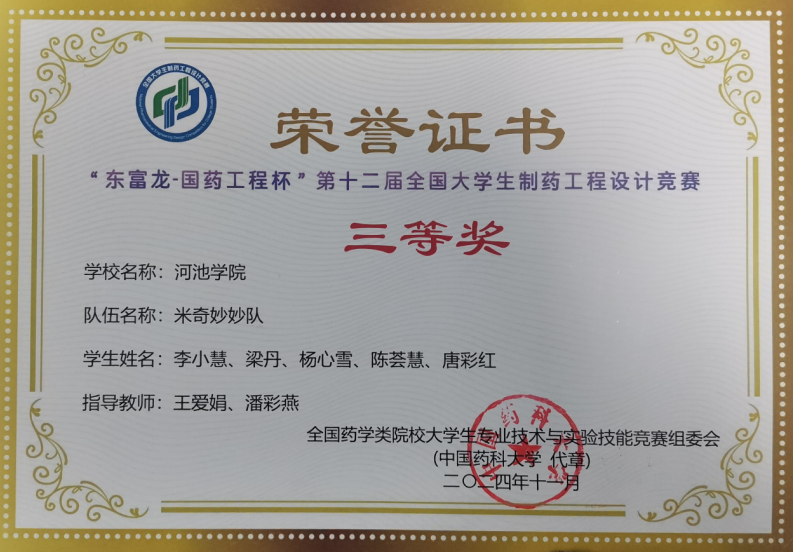 【喜讯】BWIN必赢学子在第十二届全国大学生制药工程设计竞赛中喜获佳绩