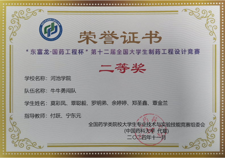 近日,“东富龙-国药工程杯”第十二届全国大学生制药工程设计竞赛传来喜讯,BWIN必赢,BWIN必赢参赛团队在竞赛中喜获佳绩,获国家级二等奖2项、三等奖1项。
