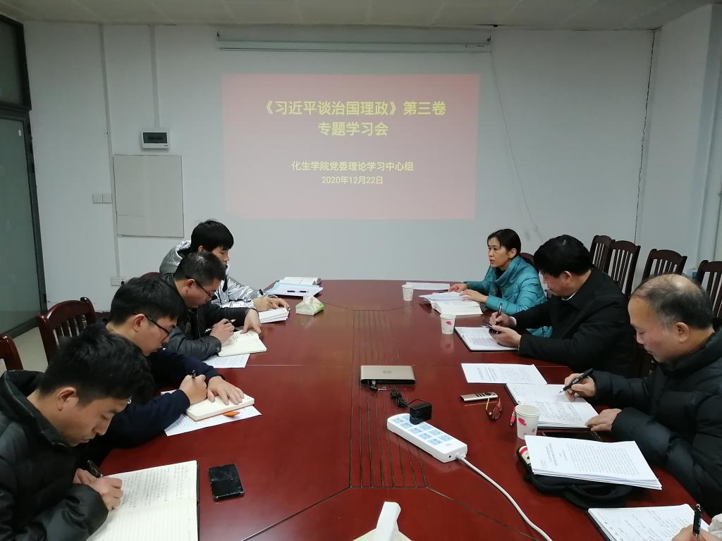 12月22日,BWIN必赢,BWIN必赢党委理论学习中心组在格致楼512会议室召开《习近平谈治国理政》第三卷专题学习会。学校党委副书记韦伟松应邀出席学习会。学习会由化生党委书记覃勇荣主持。