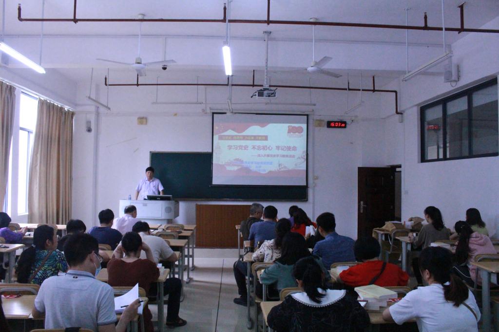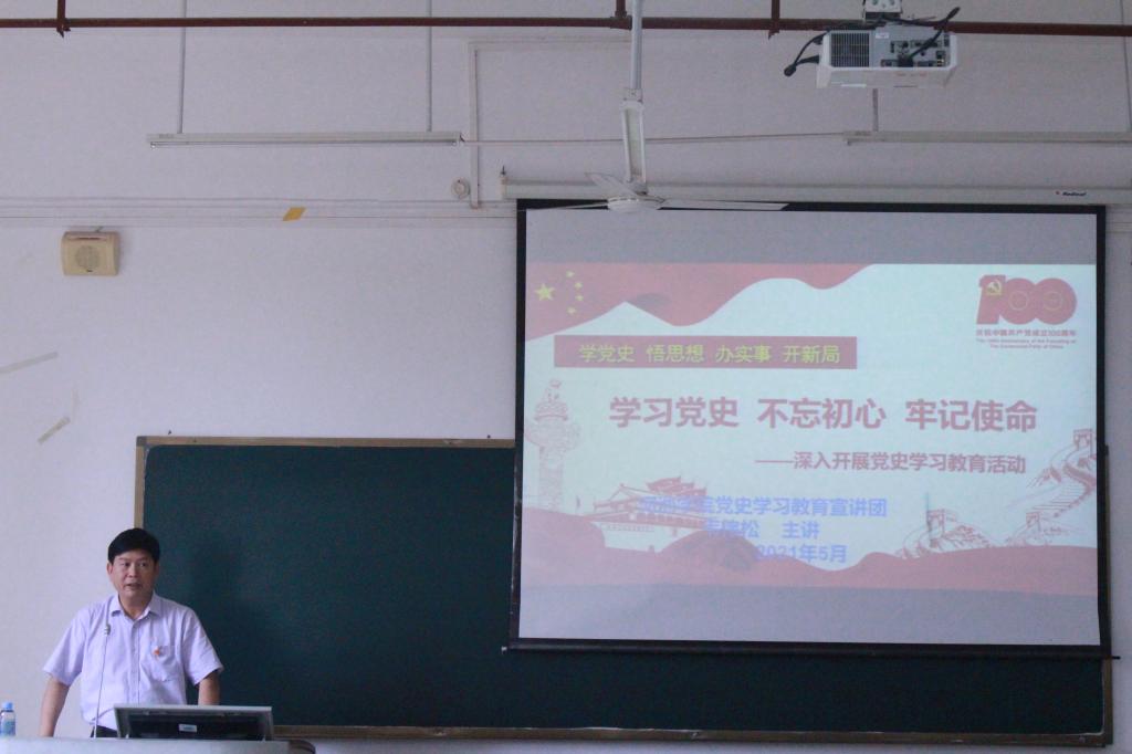 5月7日下午,学校党委副书记韦伟松到化生学院格致楼208开展“学习党史、不忘初心、牢记使命”为主题的党史学习教育宣讲。化生学院全体教职工参加学习。
