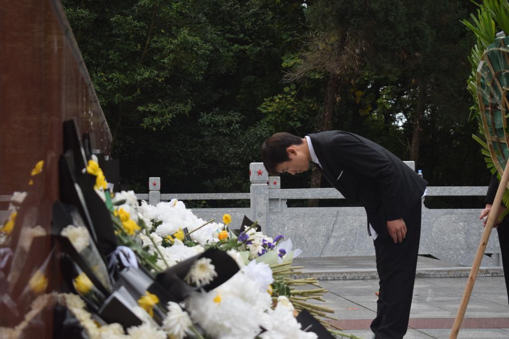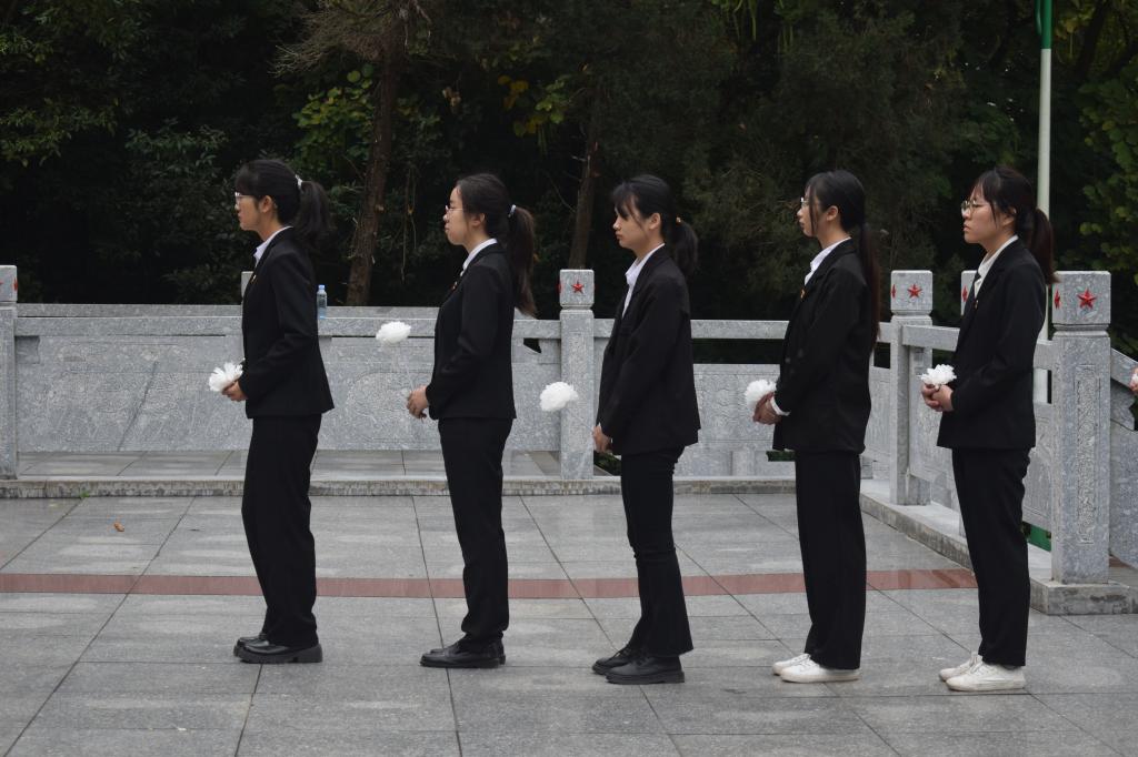 怀着对革命先烈们无比的敬意,全体师生面向烈士纪念碑列队肃立,向革命烈士默哀,并在纪念碑前敬献鲜花,以表达对先烈们的无限追思和缅怀之情。