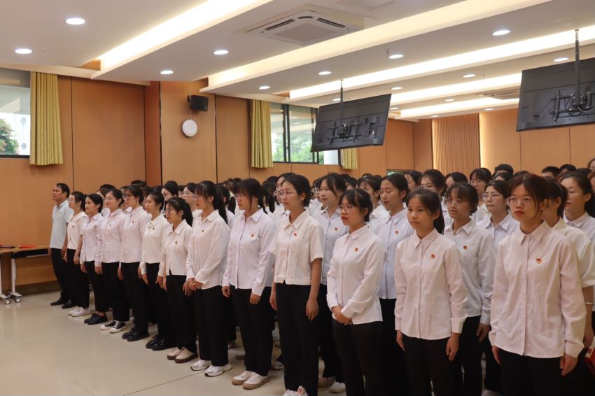 6月8日,BWIN必赢,BWIN必赢在格致楼101教室举行“奋进新征程,忆初心、迎七一”新党员入党宣誓、老党员重温入党誓词仪式。学院党委书记覃宝山,党委副书记韦正,党委组织委员王勇亮出席仪式,各支部书记及学生党员参加仪式。