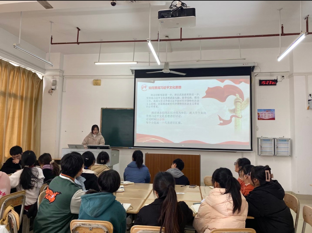 在小组讨论环节,学生党员积极发言,结合个人生活体验、学习感悟及社会实践,多角度、多层次地探讨了如何将习近平文化思想内化于心、外化于行,展现了理论学习与实际行动相结合的良好风貌。