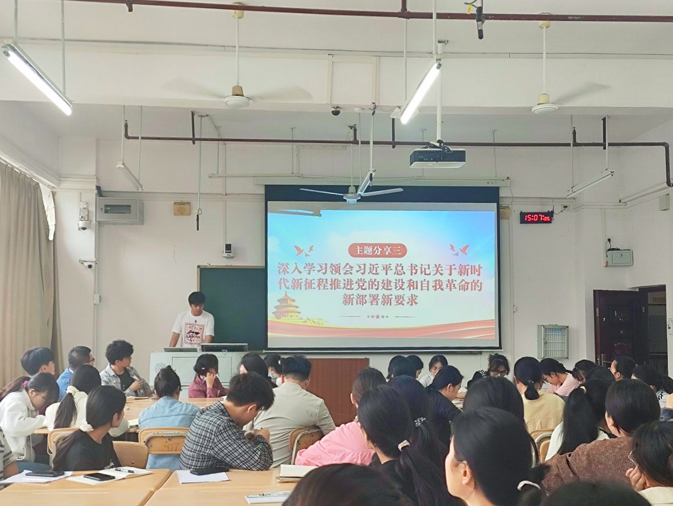 学生党员代表围绕“深入学习党史,学习贯彻习近平总书记关于全面从严治党的重要论述、学习领会习近平总书记关于新时代新征程推进党的建设和自我革命的新部署要求”进行主题分享,从理论层面深入剖析,结合实际案例讲解“全面从严治党”在新时代党和国家事业发展中的关键作用,以及习近平总书记重要讲话精神对实践工作的指导意义。
