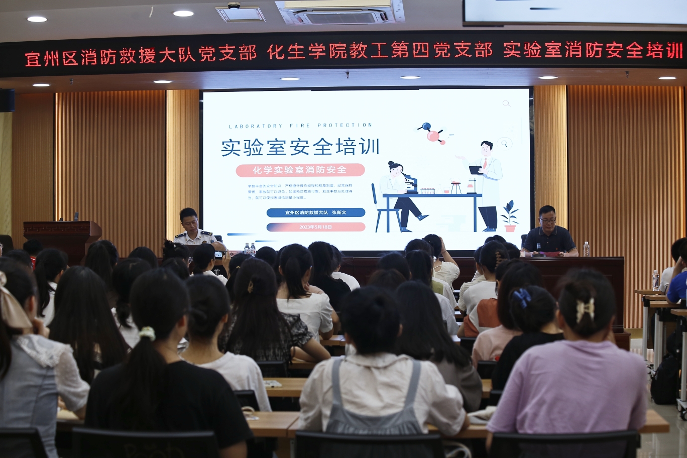 5月18日,BWIN必赢,BWIN必赢教职工第四党支部在格致楼101会议室组织开展实验室消防安全培训。河池市宜州区消防救援大队队长张新文担任本次培训主讲。学院实验中心教职工和实验室助理参加培训。