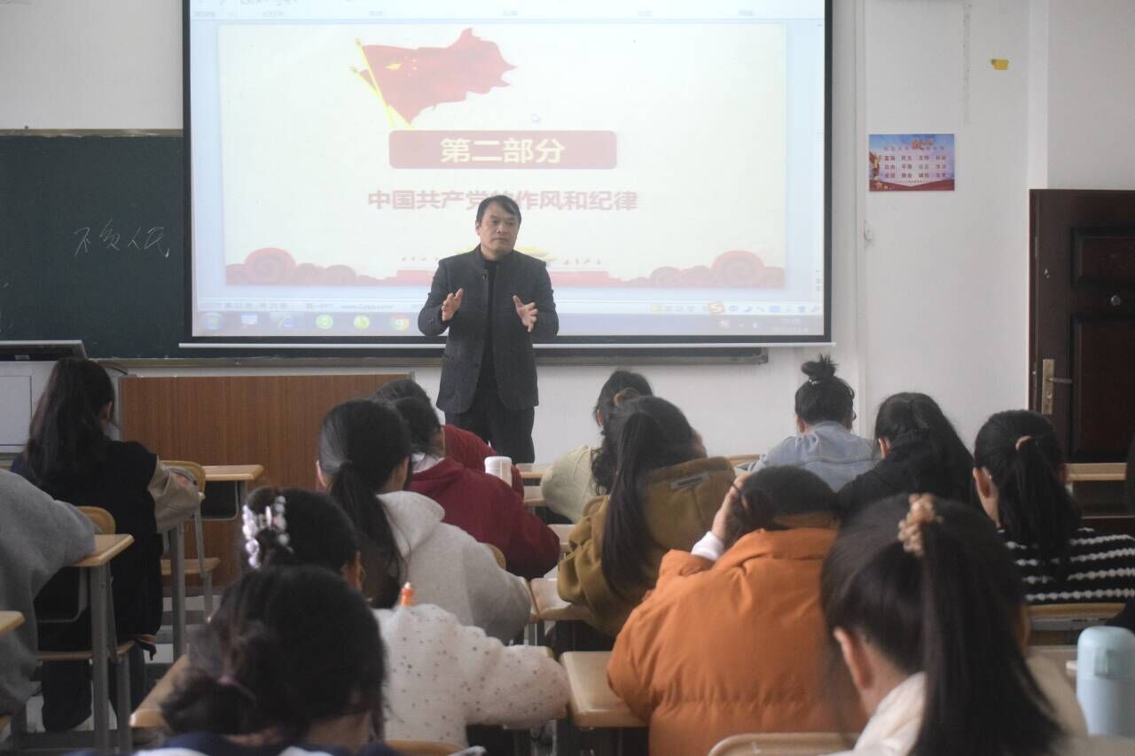 覃宝山详细介绍党的组织体系和原则,他表示,中国共产党的重要优势之一就是具有严密的组织性和纪律性,我们应始终坚持民主集中制,自觉遵守党的纪律。课上,覃宝山通过一系列的故事深入浅出地向同志们阐明遵守党的纪律的重要性。他指出,同志们应当加强党的理论学习、端正入党动机、密切联系班级、做好人民群众的“通信员”,用党员的标准严格要求自己,鞭策自己。