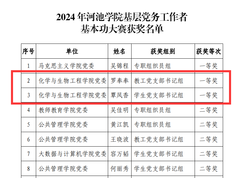 本次比赛吸引了许多优秀党务工作者参赛。比赛过程中,参赛者将本单位的党建工作特色亮点总结凝练并进行党务工作展示。赛后,评委通过参赛者在比赛各个环节的表现进行综合评分。我院教师罗奉奉、覃凤香凭借扎实的党建知识和良好的表现获得一等奖。