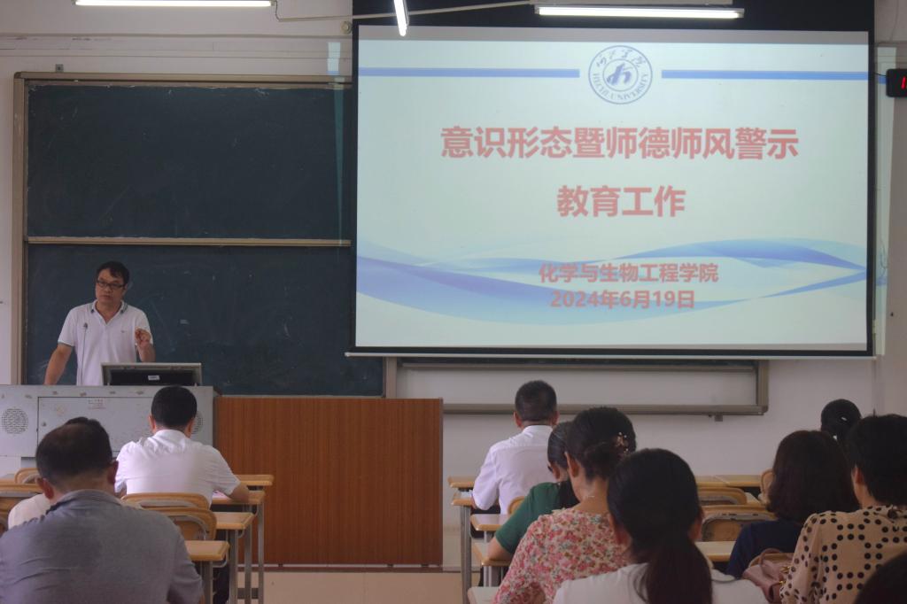 6月19日,BWIN必赢,BWIN必赢在格致楼202室召开意识形态暨师德师风警示教育工作会议。我院领导班子出席会议,全体教职工参加本次会议。会议由学院党委书记覃宝山主持。