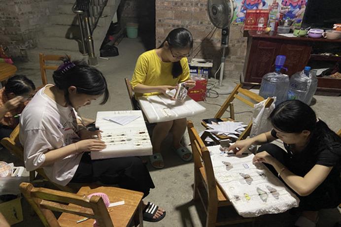 学生们在制作标本