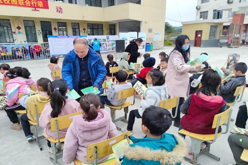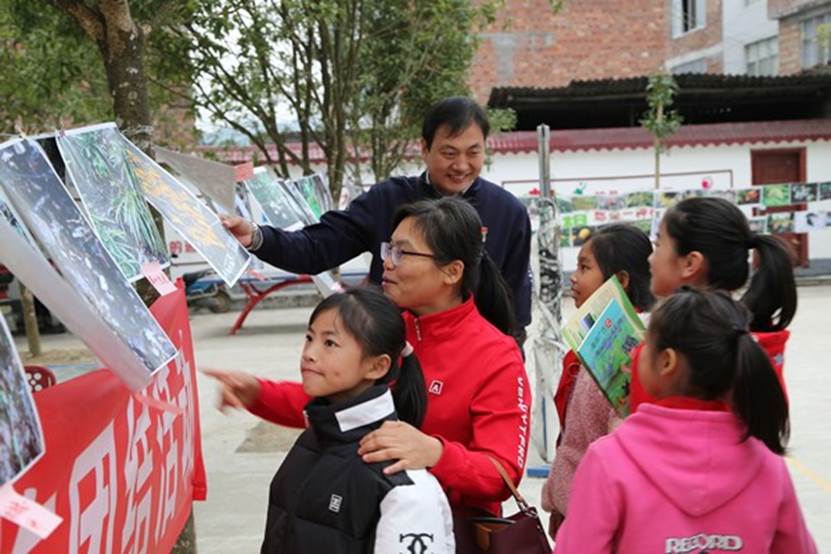 最后,由我院教师通过有关宣传图片和宣传展板向社村小学的小朋友及部分家长介绍木论自然保护区内的珍稀物种,以及这些珍稀物种的保护价值和保护方法。