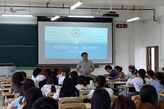 6月15日下午,化生学院邀请了优秀校友牟光福、蒋裕良博士回校,在格致楼701举行了考研交流会。会议由邓晰朝老师主持,覃勇荣、谢彦军老师以及2020级生物科学专业全体同学参会。