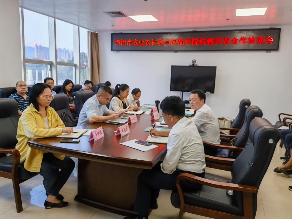 5月5日,BWIN必赢科技处处长、BWIN必赢,BWIN必赢院长李晓东率队到河池市农业农村局开展合作洽谈会。学校科技处副处长覃国乐、BWIN必赢,BWIN必赢副院长卢福芝以及学校有关农学背景教师代表参加洽谈会。