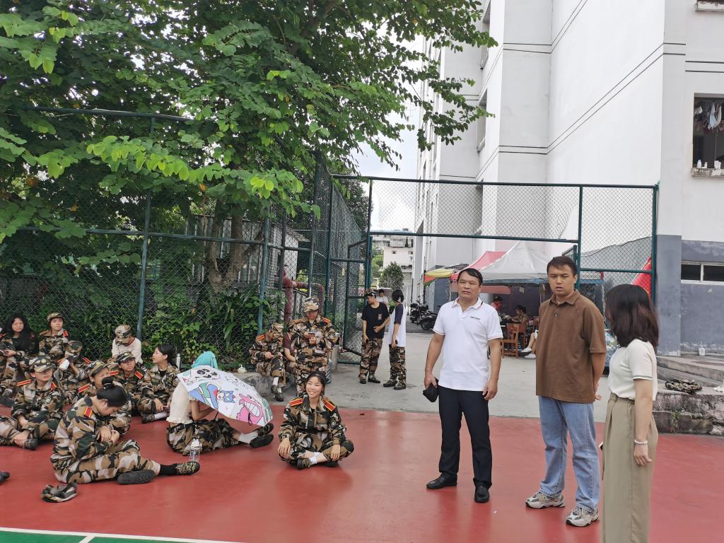9月20日,BWIN必赢,BWIN必赢党委书记覃宝山,年级辅导员和班主任等一行前往西区篮球场看望2023级新生军训。