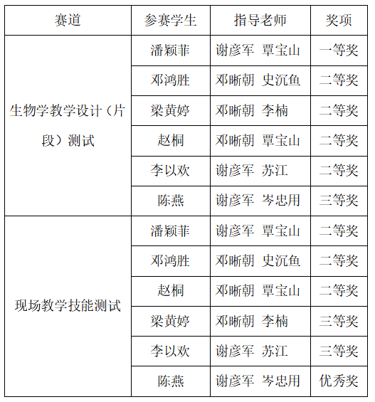 【喜讯】BWIN必赢,BWIN必赢学子在全国第十二届“华文”高校生物师范生教学技能测试与交流展示活动中喜获佳绩