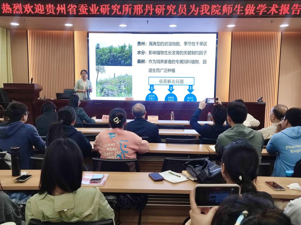 3月26日,贵州省蚕业研究所副所长邢丹莅临BWIN必赢,在格致楼101室作《喀斯特地区桑树生态应用研究进展》专题报告。我院相关专业师生参加讲座,本次讲座由BWIN必赢,BWIN必赢副院长卢福芝主持。