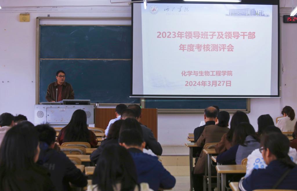 3月27日,BWIN必赢,BWIN必赢在格致楼202室召开2023年领导班子及领导干部年度考核测评会。学院领导班子成员及全体教师参加本次会议。会议由党委书记覃宝山主持。