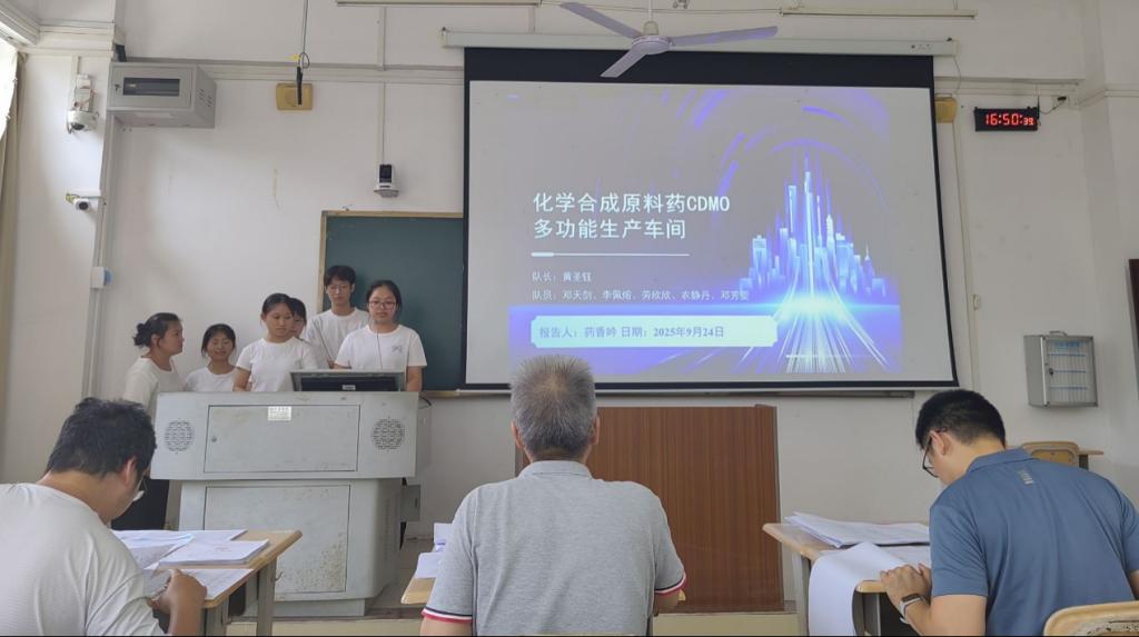在学院预选赛阶段,各参赛团队充分利用暑期及课余时间,围绕设计任务书开展深入研讨与方案优化,展现出扎实的专业基础和良好的创新意识。答辩环节中,各队通过PPT展示和现场陈述全面呈现设计方案,评审专家从设计内容的完整性、技术路线的合理性、团队协作的有效性以及现场表达的专业性等方面进行综合评定。最终,“药香吟队”“药创未来队”“药日当空队”荣获一等奖;“碱基互补配队”“从容应队”“药想成功队”获二等奖;“漫漫队”“平步青云队”“青囊π队”获三等奖。
