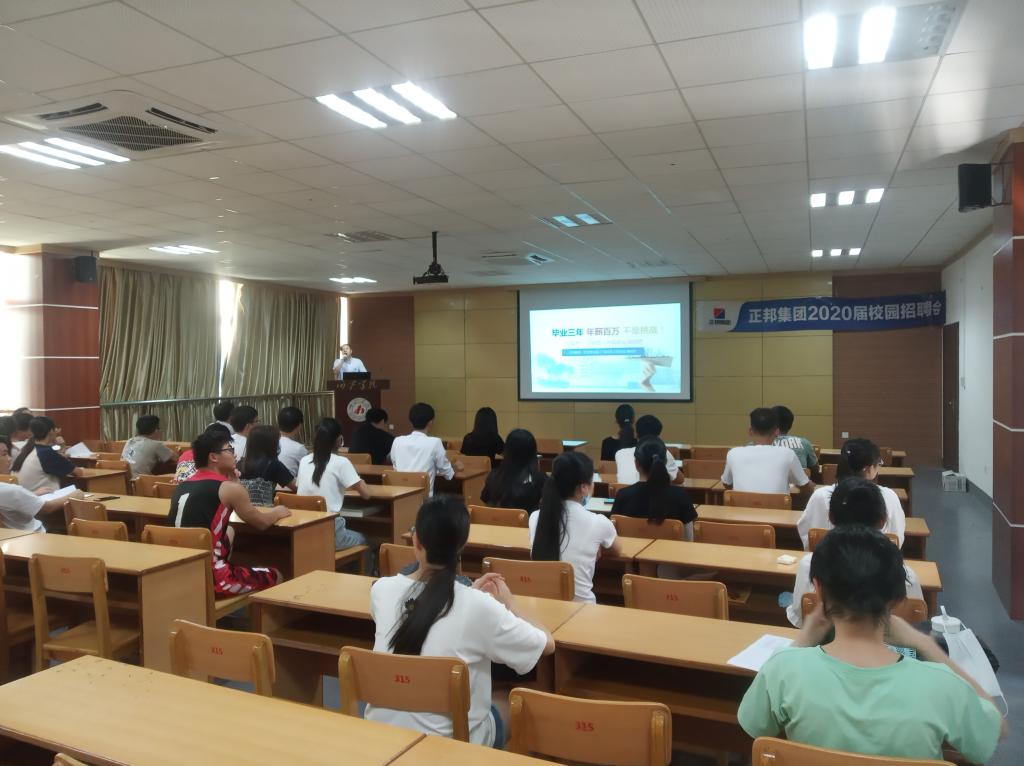 6月22日下午,正邦集团农牧事业部(广西区)在大学生活动中心315教室举行招聘宣讲会,化生学院2020届各专业毕业生参加宣讲会。该公司本次宣讲提供了140个就业岗位。
