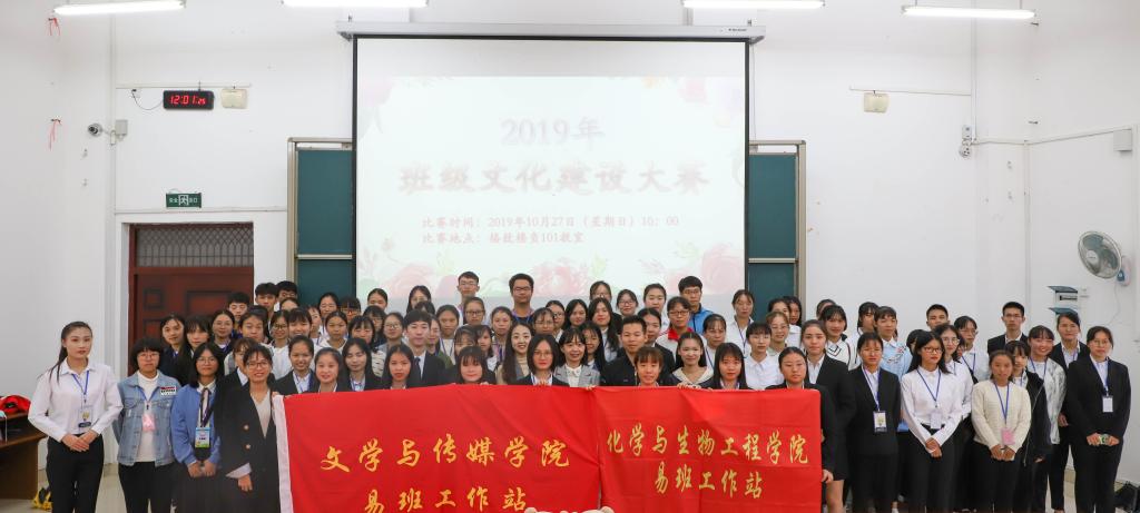 为推进我院班级学风建设,提升班级凝聚力,以良好的精神风貌迎接学校审核评估。10月27日上午,BWIN必赢,BWIN必赢联合文学与传媒学院于格致楼负101教室成功举办班级文化建设之“班徽班旗展风采设计”评比活动。担任本次评比的评委有BWIN必赢易班指导老师黄晓萍,数学与统计学院易班指导老师罗超,外国语学院易班指导老师张雁,BWIN必赢,BWIN必赢辅导员谢恋情,文学与传媒学院易班指导老师李梦辉。本次活动由化生学院和文传学院易班学生工作站联合承办,两个学院2019级共计15个班级参赛。比赛由容燕、王祁凯主持。